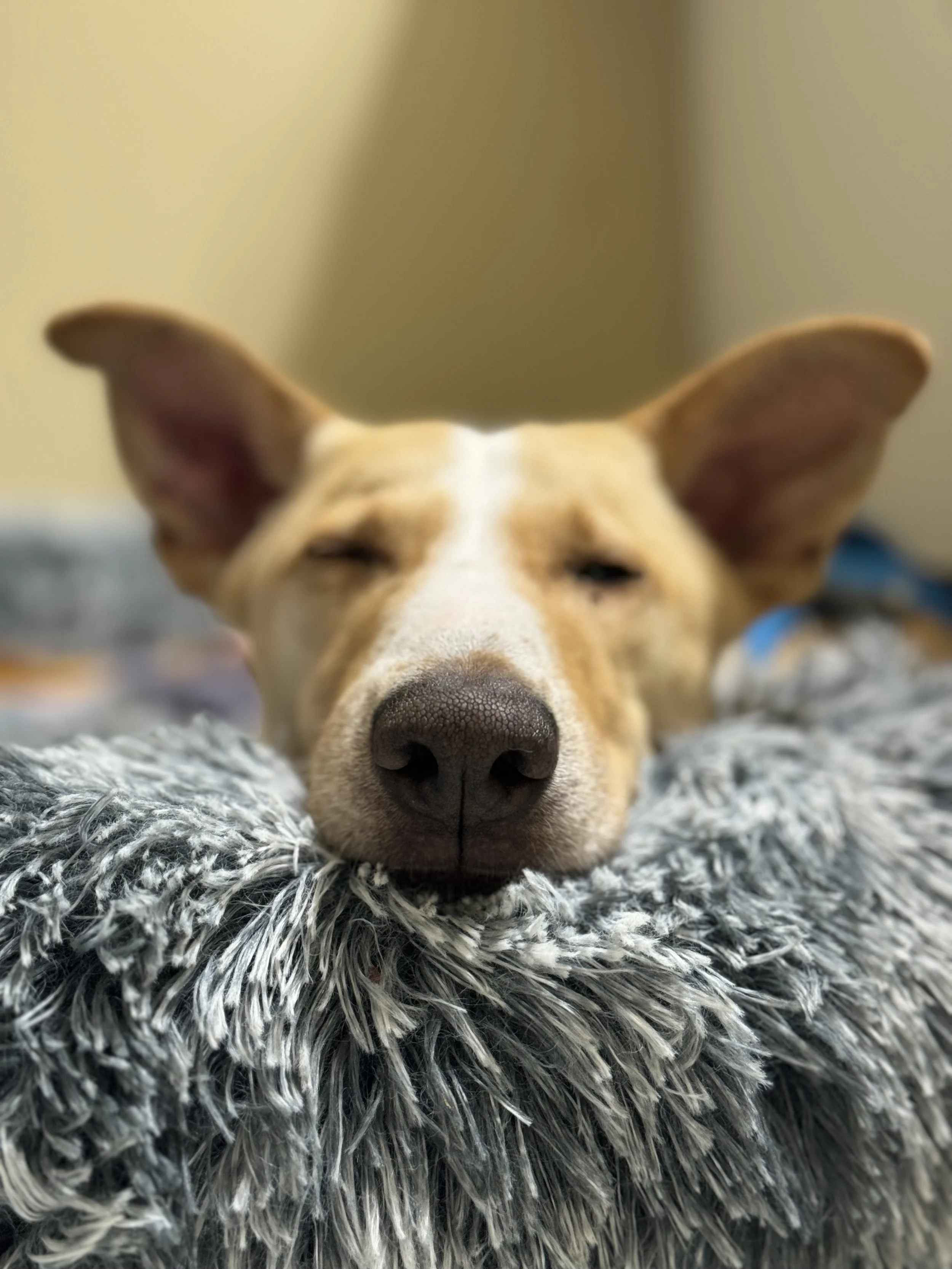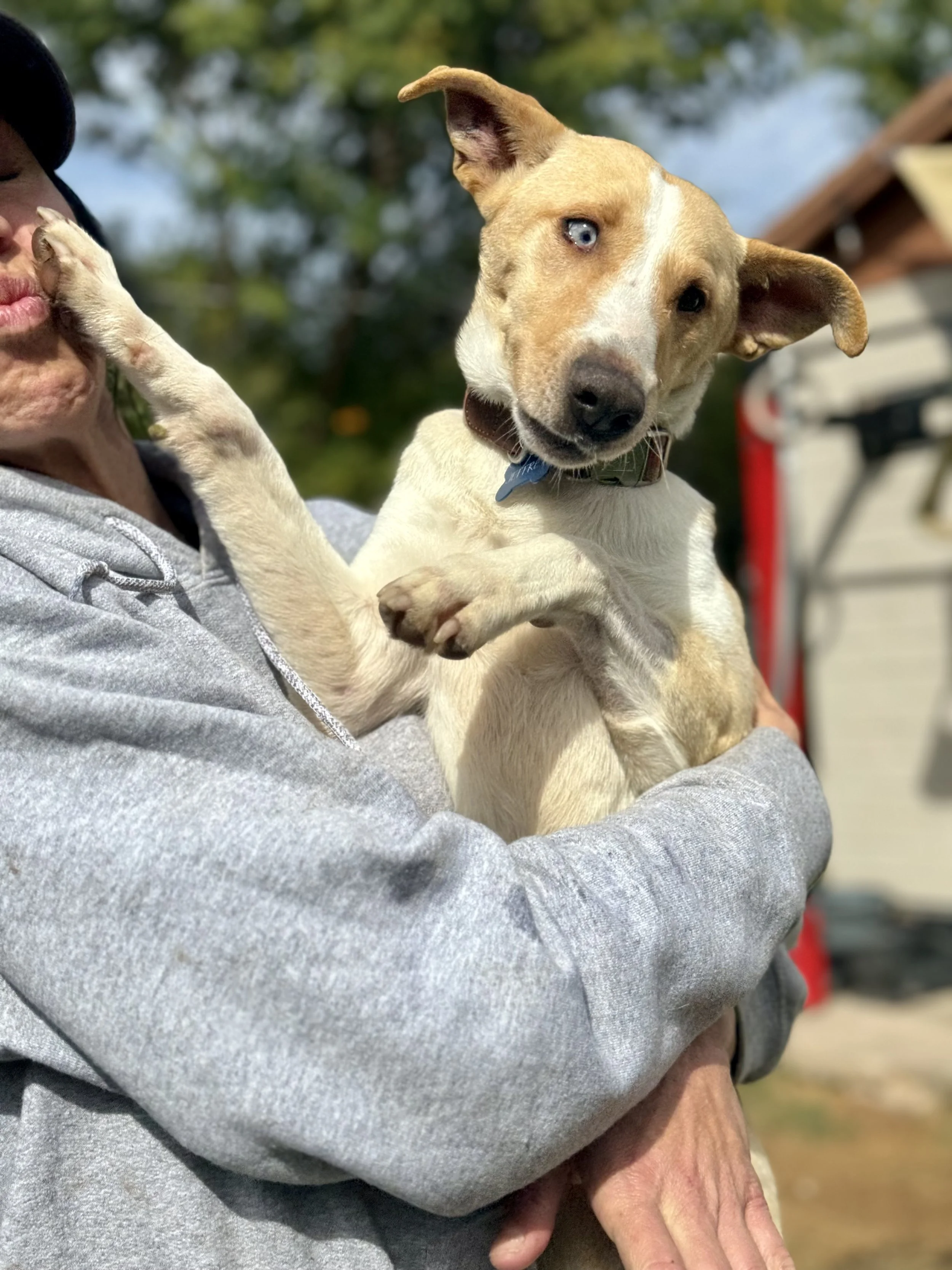 Sunshine is the life of the party! Pony hopping up and down the yard, any chance he gets. He is a wildly intelligent dog. He is a big fan of other dogs, that are gentle with him.
